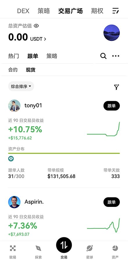 跟单交易 一键跟随顶级交易员 前往赚币